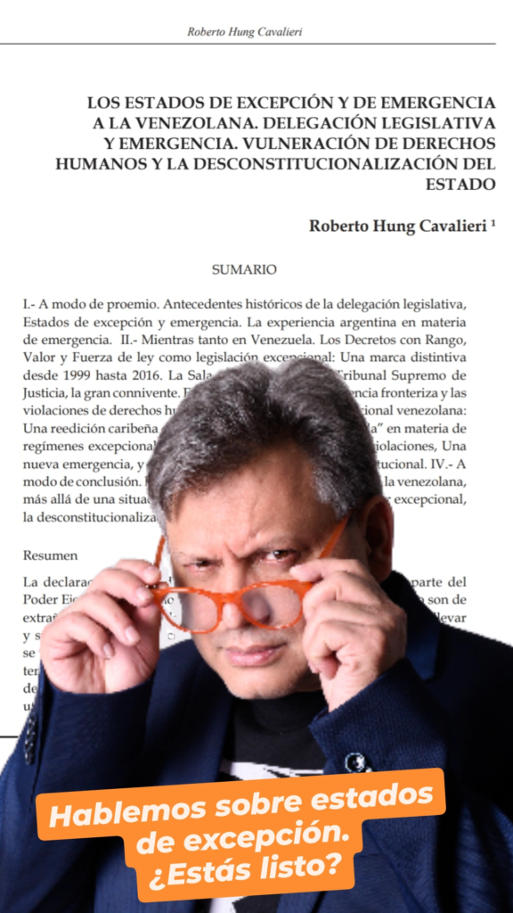 En su publicación, el autor hace un importante repaso sobre tan importante situación excepcional retrocediendo a tiempos antiguos para luego acercarse a Latinoamérica donde destaca el pensamiento de importantes juristas, en los que destacan argentinos, para luego arribar a la muy particular situación “a la venezolana”, especialmente respecto de las llamadas “leyes habilitantes” que jugaron un papel importante en la afectación en el estado de derecho y de los derechos humanos.